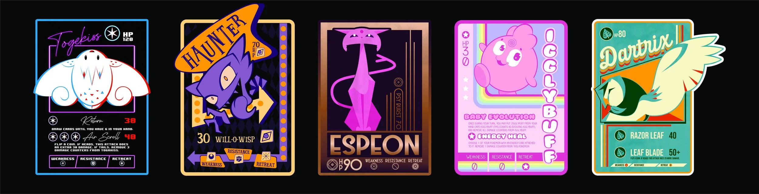 Recently I have been challenging myself to reimagine Pokémon cards in my own style. This is a personal project to stretch my design skills.